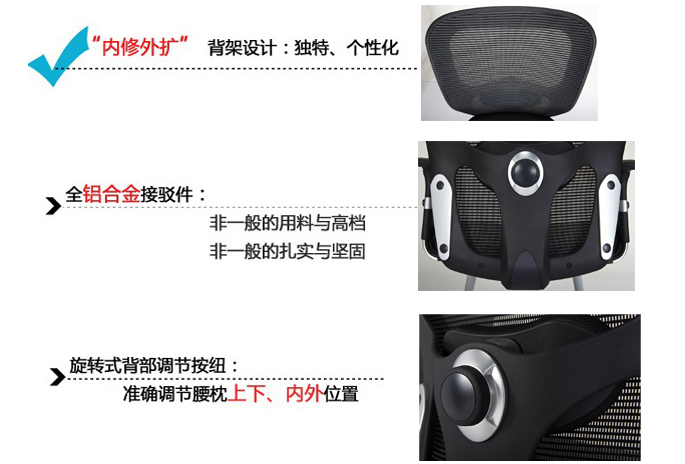 3、旋轉式背部調節按鈕:準確調節腰枕上下、內外位置