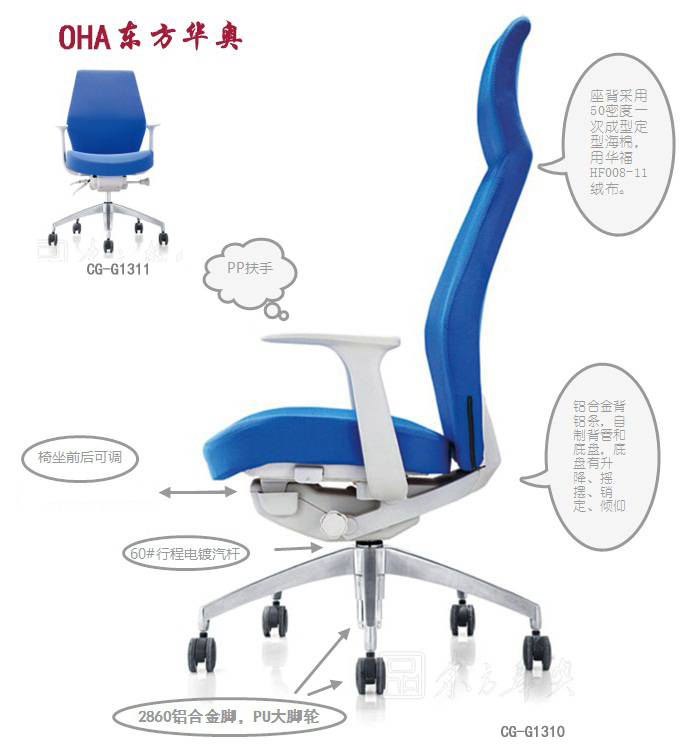 調節功能。座背采用50密度一次成型定型海棉,用華福HF008-11絨布。