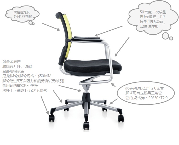 50MM,腳輪經(jīng)過5萬次阻力和疲勞測試無破裂),采用阿的高80*80汔桿,汽桿上下伸