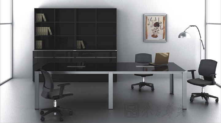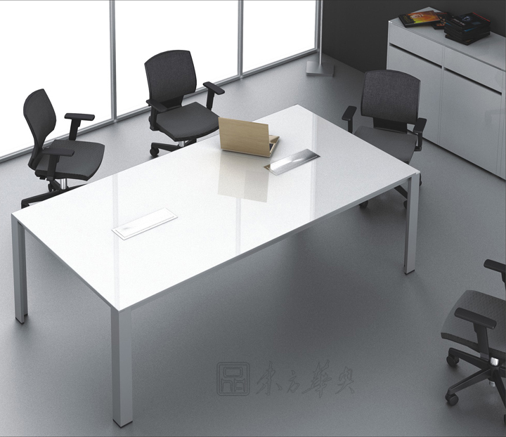 Meeting會議桌依然保持著Rising的簡約風格。桌面同樣采用鏡面高光UV漆或松木紋飾面和細薄的金屬封邊,桌腳設(shè)計為“L”形和“T”形的鋁合金柱腳,簡潔明快、輕盈大方,讓整個會議空間豁然開朗。