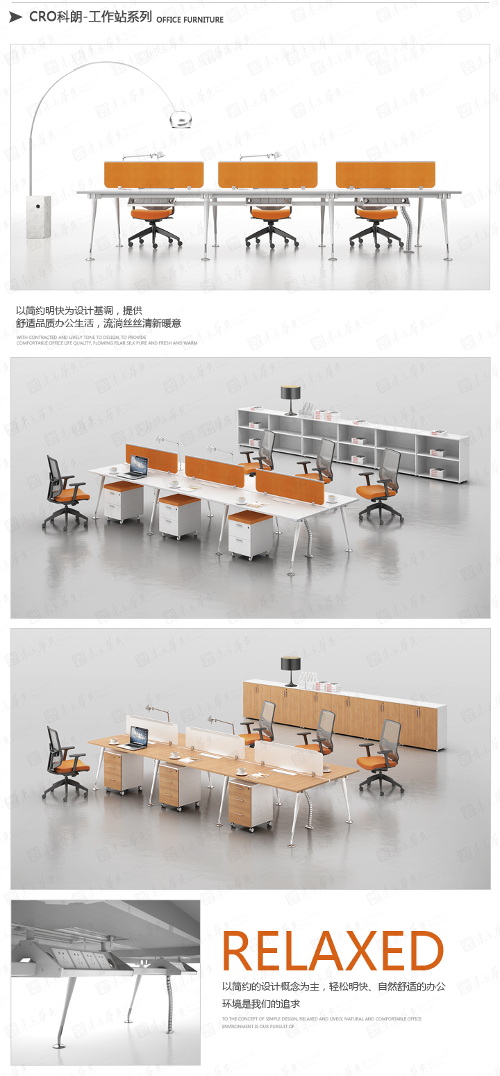 東方華奧潛心研究開發和主導整體的簡約辦公家具設計。科朗系列,以簡易的思維能勾勒出時尚的美感,后現代主義的金屬質感配以流暢明朗的線條美,塑造出科朗立體剛毅的格調。其中最為突出的設計是以金屬支架微調型桌腳作為系列特色,這個簡約的設計元素一脈相承地帶動著科朗系列的時尚簡約氣息,營造一份設計韻味極強的辦公環境,讓工作充滿樂趣。