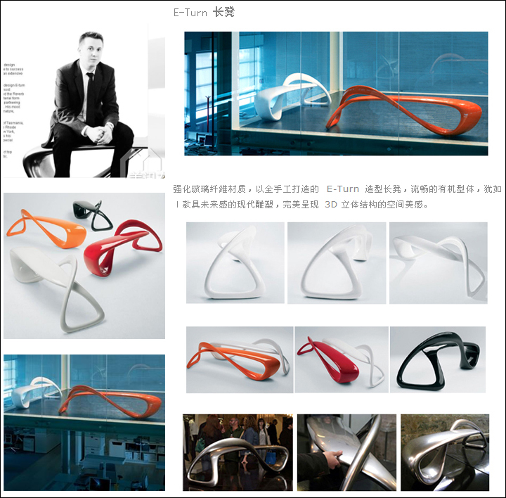 澳大利亞年輕設計師BrodieNeill所帶來的家具設計在保持獨特美觀的基礎上兼顧實用,從而得到了紐約以及倫敦各知名家具品牌的青睞。近日,他所設計推出的新系列———“E-Turn”椅子在紐約著名時尚地RubinChapelle與人們見面。