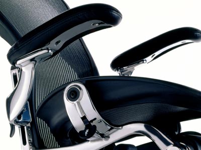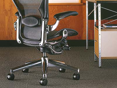Aeron座椅的拋光鋁面將其曲線美毫無保留地展現(xiàn)出來。